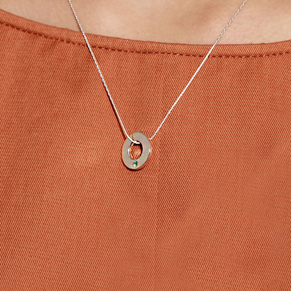 • Una esmeralda, piedra preciosa natural, montado en el dije.