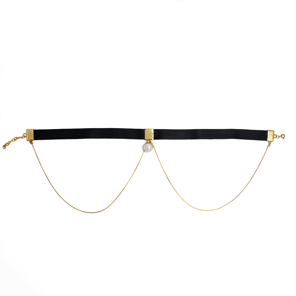 Atrévete a destacar, verte cool y elegante al mismo tiempo. Este es el collar perfecto para sobresalir. Perla cultivada colgante de un collar de piel negro, con detalles y cadena en plata .925 con chapa de oro de 22K .