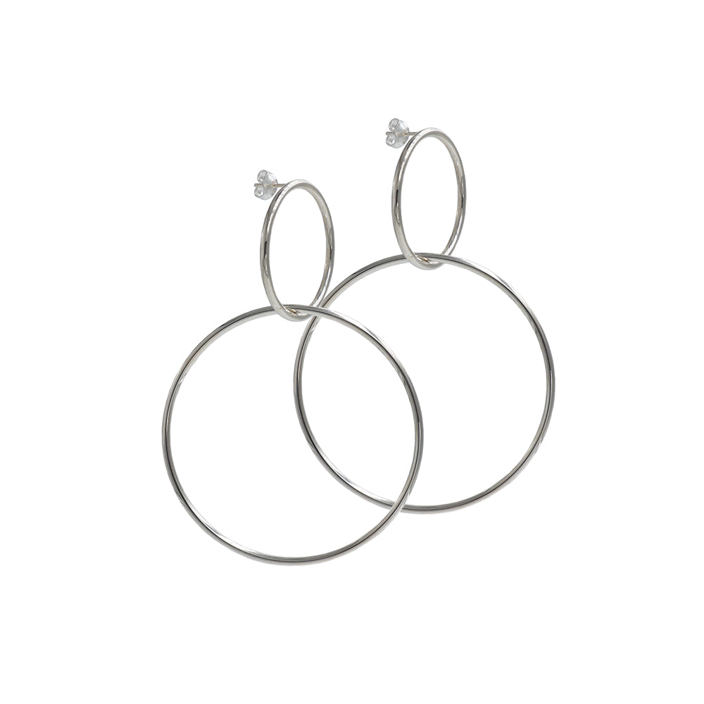 Inspirados en la arracada tradicional que a todas nos gusta, con un toque de minimalismo. Grandes, pero ligeros y sencillos. Dos aros de plata .925 entrelazados. DETALLES Largo de aretes: 7.9 cm. Diámetro aro chico: 2.8 cm. Diámetro aro grande: 5.4...