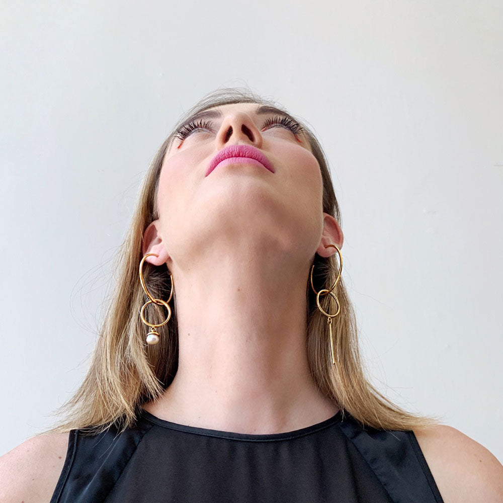Crea tu propio estilo de aretes según el humor en el que te encuentres ese día. Utiliza sólo las arracadas, o cuélgales el aro con perla, o el aro con el bastón, o ¡cuelga ambos! Tienes muchas maneras de manejarlos,...