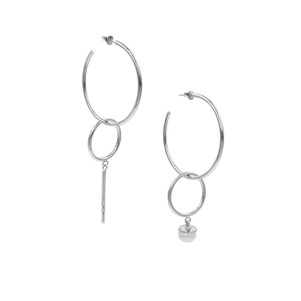 Crea tu propio estilo de aretes según el humor en el que te encuentres ese día. Utiliza sólo las arracadas, o cuélgales el aro con perla, o el aro con el bastón, o ¡cuelga ambos! Tienes muchas maneras de manejarlos, altos y bajos, como en la vida; sigue tus instintos y hazlo a tu manera.