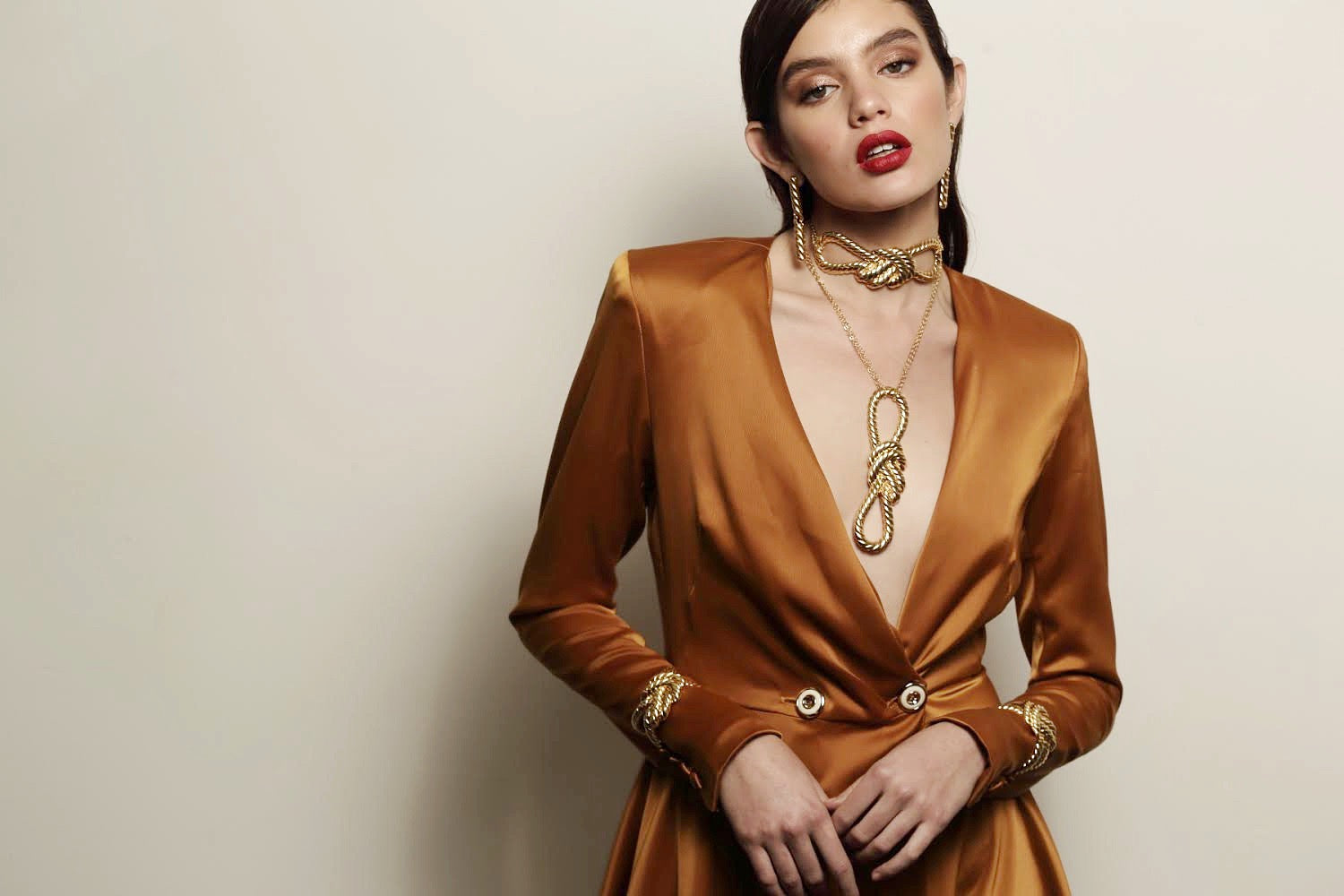 Choker ajustable con dije con forma de nudo, parte de la colección Soga. Piezas inspiradas en sogas náuticas, con texturas que proyectan delgados filamentos que se unen para formar un objeto fuerte y resistente, recordándonos que la unión hace la...